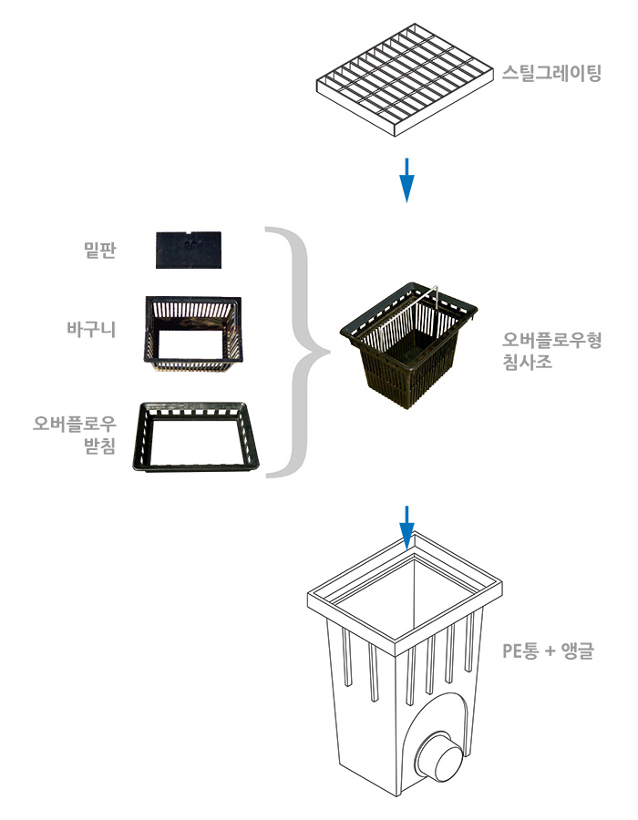 | 410×510×H520 | 56,000원 | PE통 + 앵글 + 그레이팅 i바 50×5×3 + 오버플로우 침사조 |